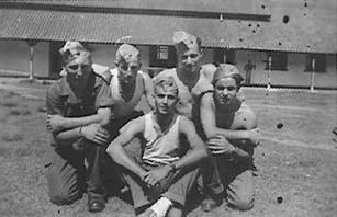 06.00 u Overal. We varen nu langs de kust van Madoera. We hadden een prachtig gezicht op de kust, met bossen en palmen, en op de achtergrond van die hoge bergen die boven de wolken uitstaken. We passeerden vele wrakken van schepen die nog door de Jappen, tijdens WO II, tot zinken zijn gebracht. Om 10.00 uur meerden we aan de kade van Soerabaja. We werden direct ontscheept en op trucks geladen en reden we naar ons nieuwe kamp in Soerabaja Minko. Soerabaja is een mooie stad, mooier dan Batavia. Er wonen hier ook meer Europeanen dan in Batavia. We reden met een snel tempo door de stad, dus we hebben alles maar vluchtig gezien. Het kamp ligt een half uur lopen van de stad. We werden toen we in het kamp aankwamen verdeeld in bakken, zo werd onze groep in tweeën gedeeld. Nu liggen Karel, Piet en mijn persoontje bij elkaar, maar Pierre, Henk en Jan liggen in de kamer hiernaast, 't Is wel jammer maar we zitten toch nog in dezelfde klas. We blijven hier een week voor de opleiding. Dan worden we ingedeeld bij verschillende onderdelen. De meeste van ons zullen wel bij de infanterie komen.